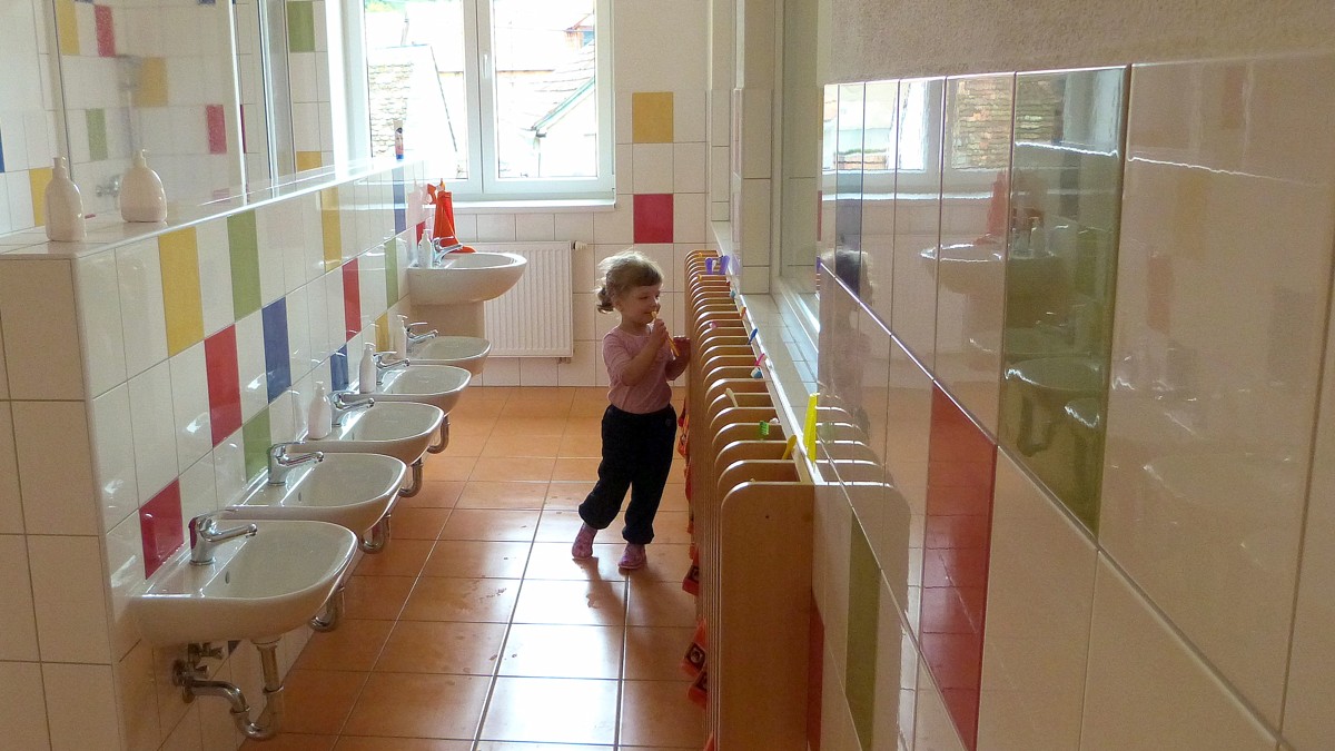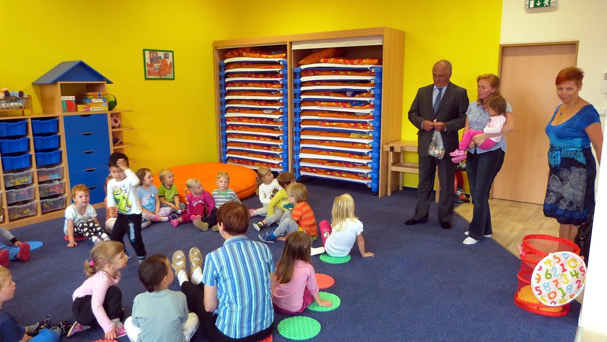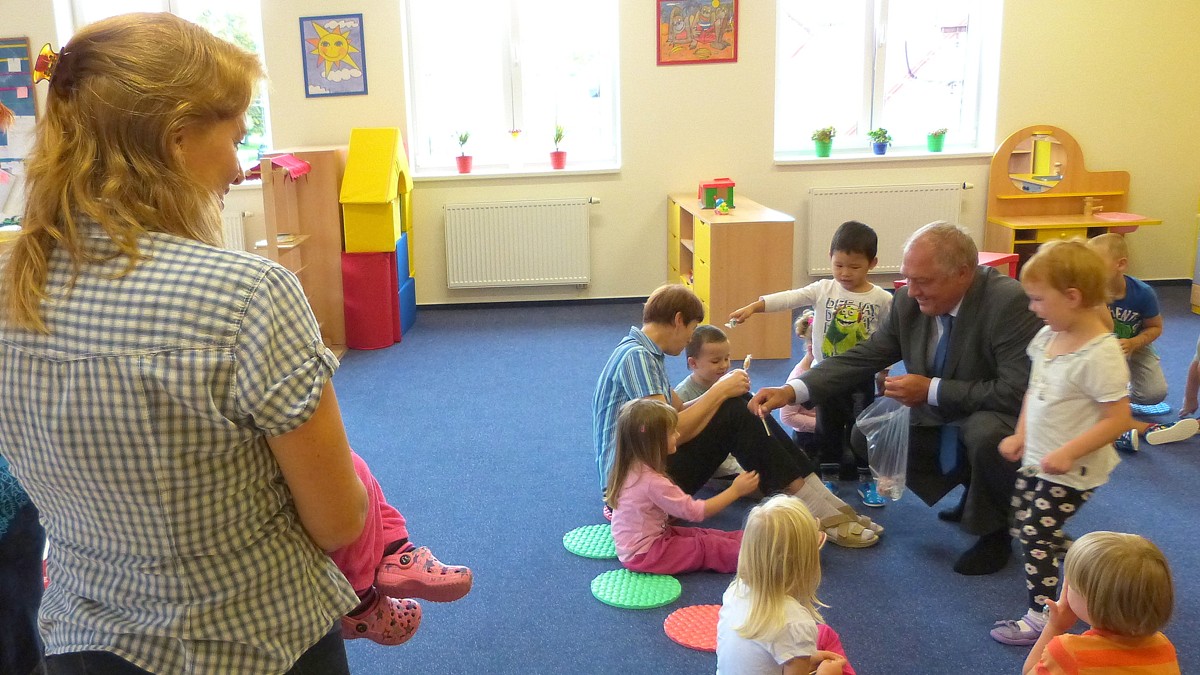 Fotografie z prvního dne v nově postavené Mateřské školce v Habrovanech. Foto - Lubomír Uher