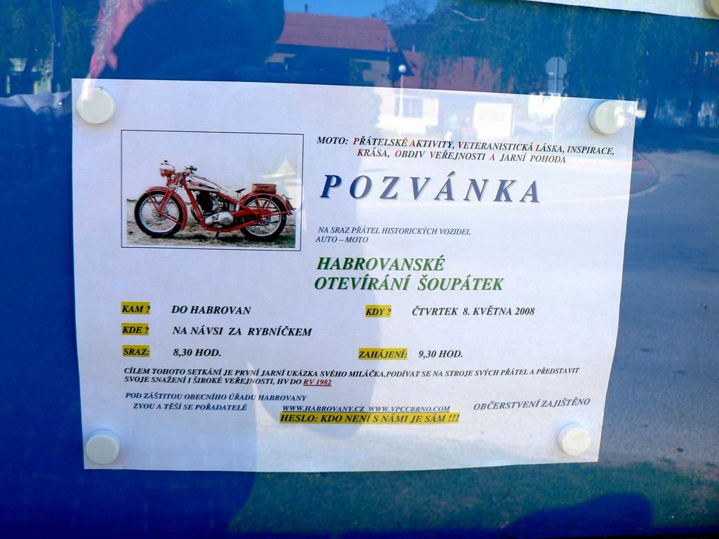 8.května 2008 uspořádal na návsi v Habrovanech spolek přátel historických vozidel Habrovany "Otevírání šoupátek", na které přijelo 102 historických vozidel.Autorem fotografií je p.Luboš Uher, více fotek a ve vyšším rozlišení je k dispozici na obecním úřadě.